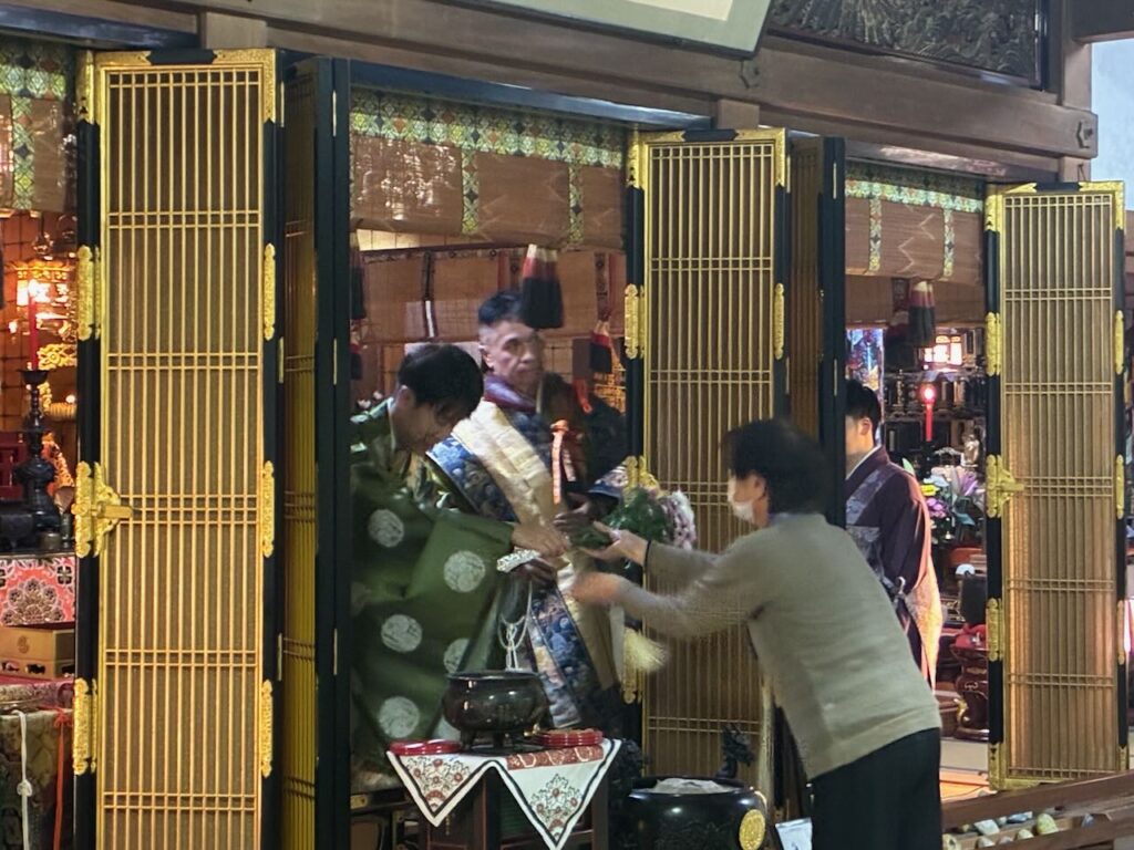 娘の法要中行道、仏様の周りを3回する夜法要のみ1度行われます