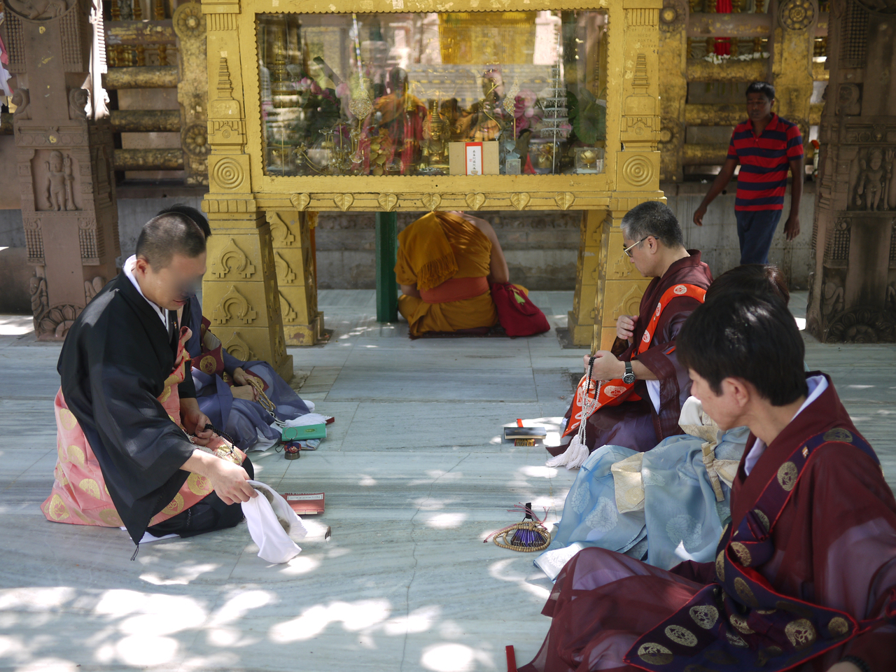さてブッダガヤの大塔はお釈迦様が悟りを開かれた極めて重要な聖地であり、誰もが自分の信仰する教えのお経を読みあげたいと願う。かつて駐在していた時は浄土真宗の僧侶は私だけだったので一人でこの「正信偈」を勤め上げたことはあったが、複数でのお勤めは一度もしたことがなかった。